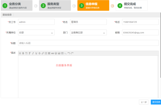 ? 提供符合客戶的服務(wù)類別定義、服務(wù)流程定義, 根據(jù)業(yè)務(wù)類型設(shè)計不同的服務(wù)工單,并根據(jù)服務(wù)目錄內(nèi)容提供用戶自助服務(wù)界面,包括手機(jī)端及電腦端