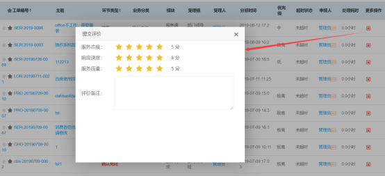 ? 用戶通過手機(jī)端以及自助服務(wù)臺快速進(jìn)行服務(wù)確認(rèn)和滿意度評價(評星+評語),用戶未確認(rèn)的工單在N天后系統(tǒng)自動確認(rèn)和評價(5星好評)。系統(tǒng)管理員可配置自動確認(rèn)、評價、天數(shù)