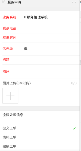 ? 支持移動端,用戶通過移動終端進(jìn)行服務(wù)工單創(chuàng)建、查詢、進(jìn)度跟蹤以及滿意度反饋、投訴等操作。(與客戶企業(yè)內(nèi)VWORK集成 H5界面)。運(yùn)維人員可通過移動端對工單進(jìn)行操作,如分配、受理、轉(zhuǎn)派、解決等