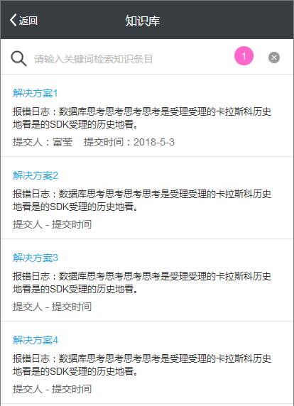 知識提交通過審核后將會保存到知識庫中,知識內(nèi)容包括癥狀描述,產(chǎn)生原因,具體內(nèi)容和上傳的附件。