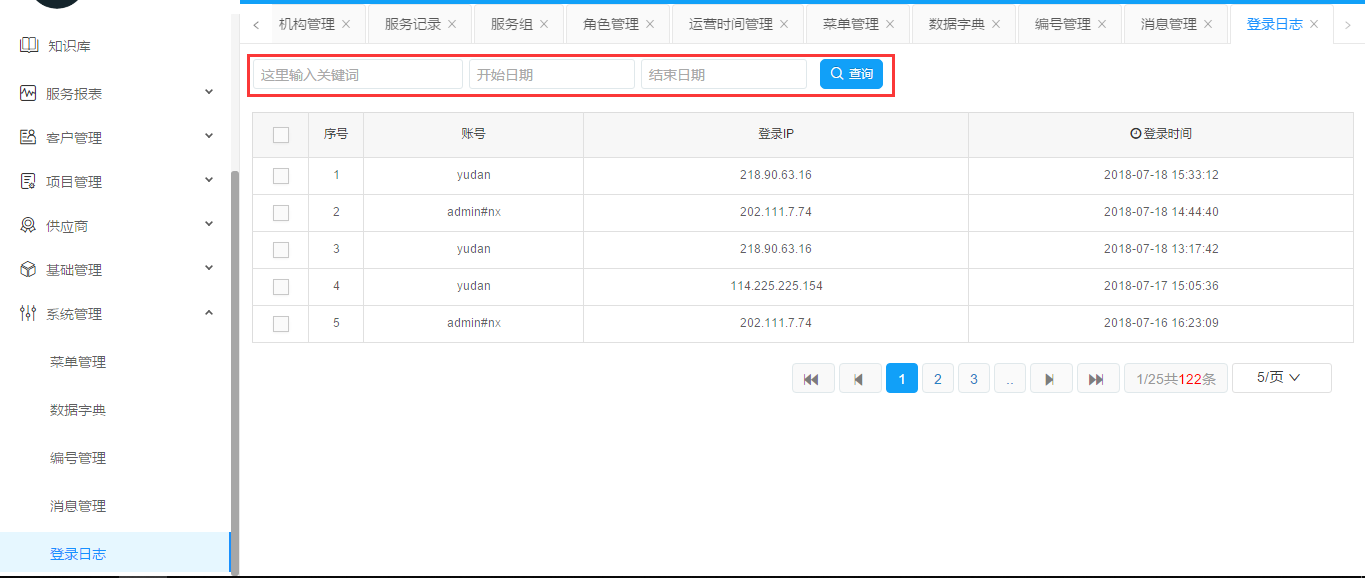 可通過關(guān)鍵詞、開始日期以及結(jié)束日期檢索到相應人員的系統(tǒng)登錄情況
