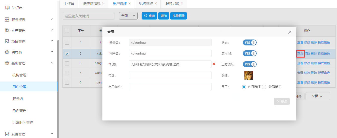 用戶管理致力于管理公司員工信息,公司管理員可以對員工進行重置密碼、角色授權等