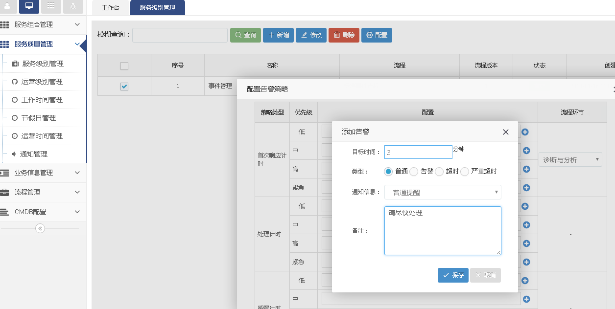 根據(jù)流程節(jié)點的優(yōu)先級配置告警時間和通知方式