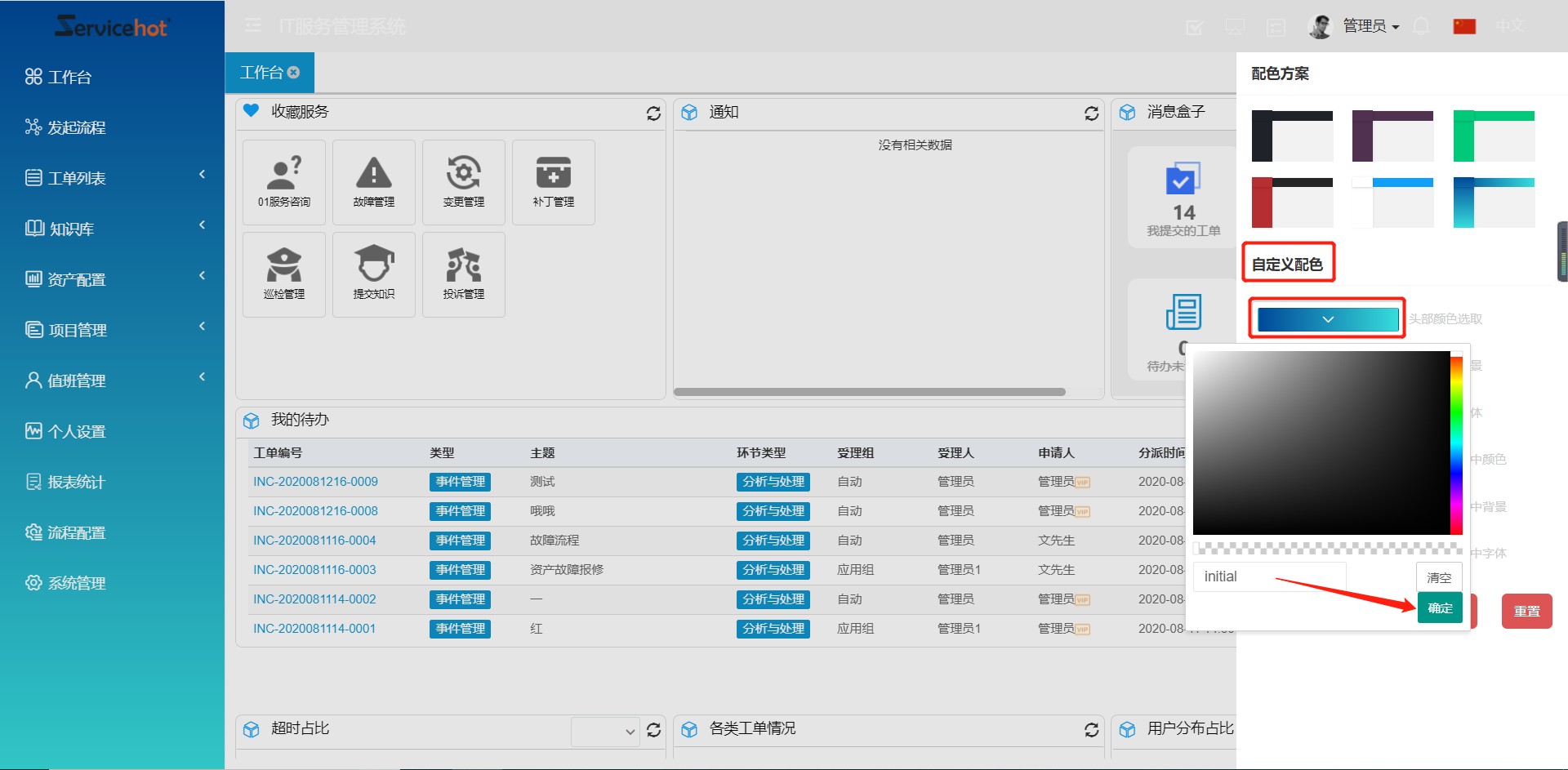 系統(tǒng)提供自定義配色主題,用戶可通過視覺愛好對(duì)系統(tǒng)主題進(jìn)行配色