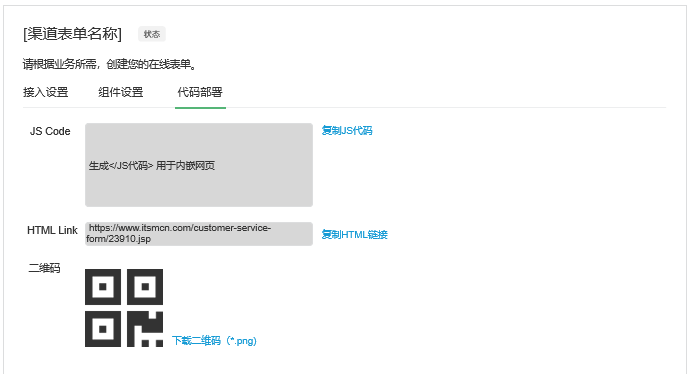 - JS代碼:拷貝插入到網(wǎng)頁(yè)代碼中,部署完成后右下角會(huì)出現(xiàn)提單按鈕。