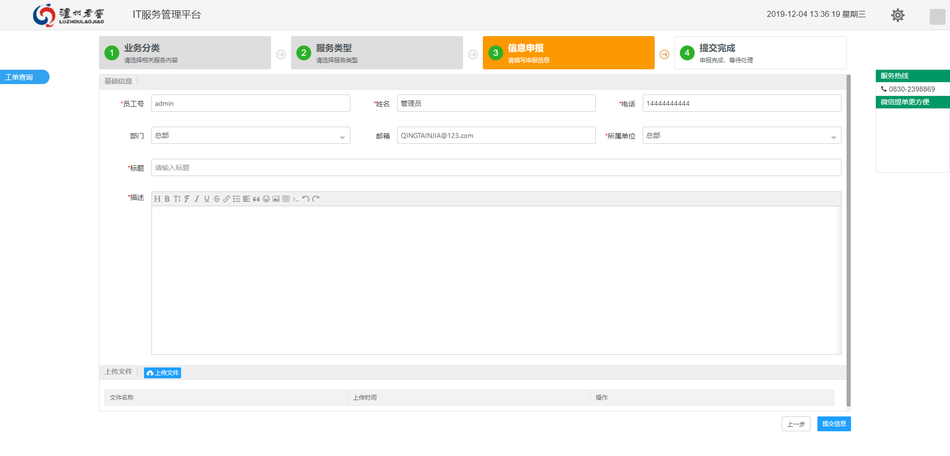● 提供多種服務請求生成方式(微信、郵件、運維服務臺),用戶可根據自己需求快速提交工單。