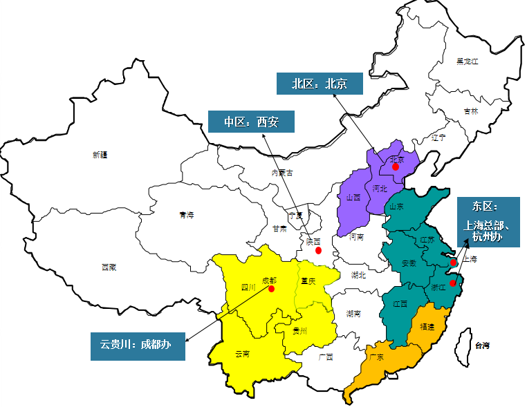 再來看看上海博安在全國范圍內(nèi)的網(wǎng)點(diǎn)分布情況: