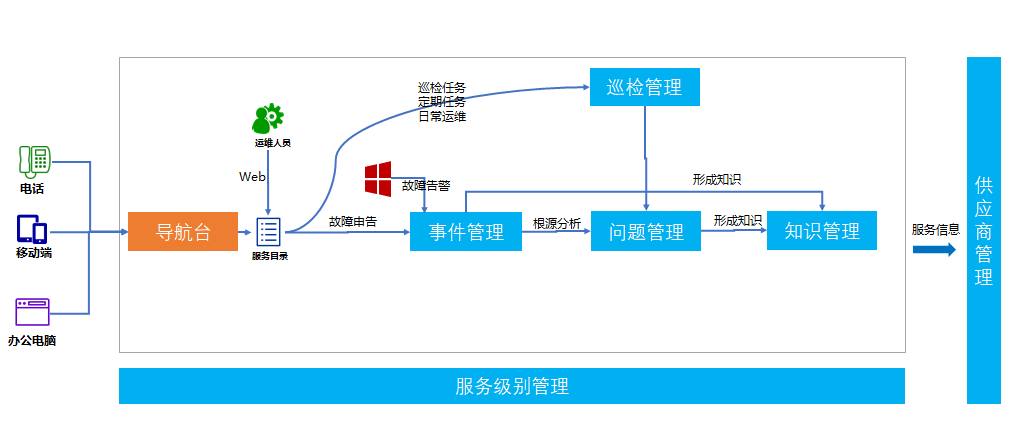 - 多樣化服務門戶、服務臺,多種渠道報障方便快捷;
