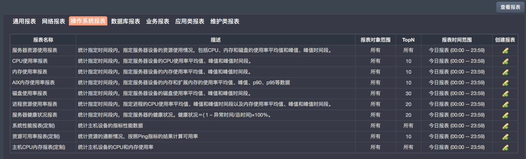 用戶可以依據(jù)運(yùn)維管理的需要定義自己的運(yùn)維報(bào)告模板,比如日報(bào)、周報(bào); 又比如:主機(jī)運(yùn)維報(bào)告、網(wǎng)絡(luò)運(yùn)維報(bào)告、數(shù)據(jù)庫運(yùn)維報(bào)告等等。