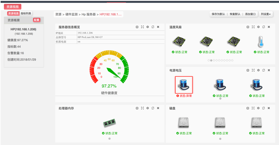 圖表:服務(wù)器硬件狀態(tài)一體化視圖展現(xiàn)