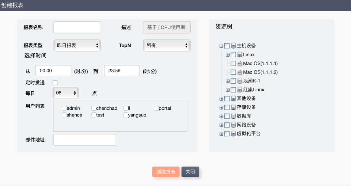 運(yùn)維監(jiān)控系統(tǒng)內(nèi)置二十多套統(tǒng)計(jì)報(bào)表默認(rèn)模板,管理員可以指定統(tǒng)計(jì)報(bào)表的時間區(qū)間,并選擇指定將哪些資源加入到統(tǒng)計(jì)報(bào)表中。