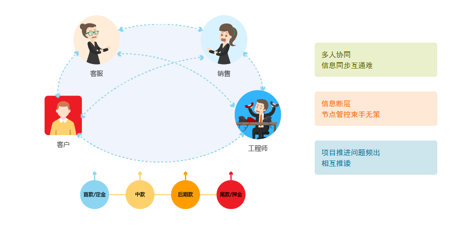 1、多部門流轉(zhuǎn)繁瑣,解決客戶問題效率低下