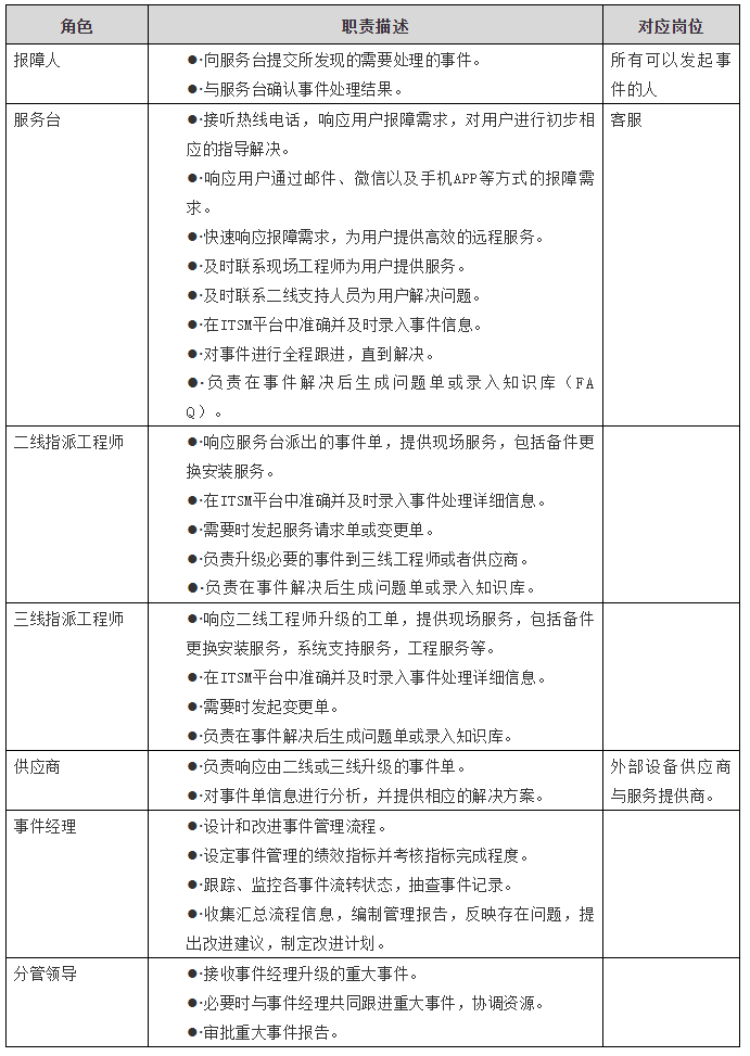 6. 原則上,服務(wù)臺、事件經(jīng)理、指派工程師可根據(jù)實際情況對事件分類、分級等信息進行調(diào)整。